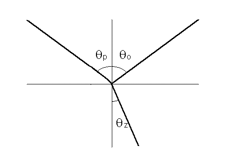 Rys. 1. Promienie: padający, odbity i załamany na granicy dwóch ośrodków. Kąty q p (padania), q o (odbicia) i q z (załamania) mierzymy wzglêdem normalnej do granicy ośrodków