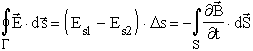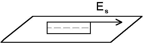 Rys. 36. P³aszczyzna graniczna pomiêdzy dwoma ośrodkami. Prostokątna zamkniêta krzywa Stokesa G przecina powierzchniê graniczną. Pokazana jest sk³adowa Es pola elektrycznego styczna do powierzchni granicznej.