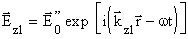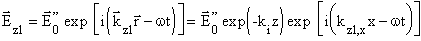 gdzie k jest wektorem falowym w ośrodku materialnym, którego urojona czêśæ, dla zespolonego wspó³czynnika za³amania charakteryzującego dany ośrodek nz, bêdzie zawieraæ wektor ekstynkcji a opisujący zmianê amplitudy fali z odleg³ością. Oczywiście wektor k0 to wektor falowy danej fali w pró¿ni. Podane wy¿ej wyra¿enie opisujące wektor B mo¿na otrzymaæ ³atwo z równania Faradaya: