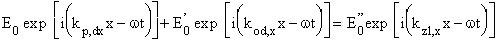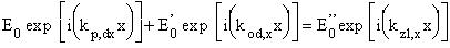 Dla z = 0 i t = 0, biorąc pod uwagê, tak jak poprzednio, ¿e równanie to musi byæ spe³nione dla wszystkich x, otrzymamy nastêpujące wyra¿enie, wią¿ące ze sobą amplitudy trzech fal: