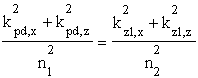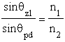 Stosunek sinusów, wobec równości sk³adowych x bêdzie zatem równy stosunkowi d³ugości obu wektorów falowych, który z kolei jest przecie¿ równy stosunkowi wspó³czynników za³amania. Mamy zatem: