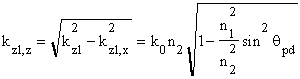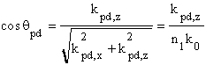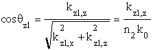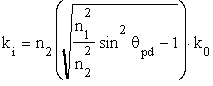 gdy¿ wspó³czynniki za³amania nie są ju¿ równe zatem i d³ugości wektorów falowych nie bêdą równe. Wobec równości sk³adowych x mo¿na u¿yæ powy¼szego równania do znalezienia wartości sk³adowej z wektora falowego fali za³amanej w zale¿ności od sk³adowych wektora falowego fali padającej. Powrócimy do tego za chwilê, gdy¿ równanie to ma ciekawsze konsekwencje, którymi zajmiemy siê teraz. W specjalnym przypadku, gdy wektory kpd i kod są rzeczywiste, to: