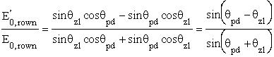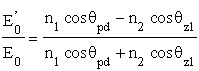 . Wspó³czynnik za³amania n1 skróci siê i otrzymamy nastêpujący wzór na stosunek amplitud fali za³amanej i padającej dla rozpatrywanej polaryzacji: