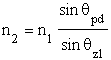 Wykorzystamy teraz prawo Snella i wyeliminujemy wspó³czynniki za³amania podstawiając za n2 odpowiednie wyra¿enie,