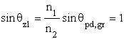 Inny ciekawy przypadek zachodzi gdy n1 > n2, tzn fala pada ze strony ośrodka gêstszego. Gdy kąt padania bêdzie wiêkszy od pewnej wartości krytycznej, dla której kąt za³amania staje siê równy 90° :