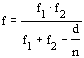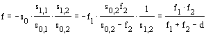 Ponieważ moc optyczna układu jest proporcjonalna do odwrotności jego ogniskowej chcemy wyliczyæ ogniskową f układu złożonego. Przyjmijmy zatem s0,1 = s0 = ¥ . Mamy wówczas: s1,1 = f1, s0,2 = -f1 + d i s1 = f. Zatem: