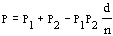 gdzie P jest mocą optyczną układu a P1 i P2 są mocami optycznymi zewnêtrznych powierzchni łamiących soczewki grubej. Tak jak należało oczekiwaæ wkład do całkowitej mocy optycznej soczewki, pochodzący od warstwy o grubości d jest do d proporcjonalny. W granicznym przypadku, gdy d ® 0, soczewka gruba przechodzi w cienką i P = P1 + P2., gdzie P1, P2 są mocami optycznymi powierzchni łamiących, tak jak należało oczekiwaæ (i jak otrzymaliśmy poprzednio w inny sposób dla soczewki cienkiej).