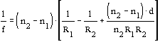 We wzorze tym R1 i R2 to promienie krzywizny powierzchni zewnêtrznych soczewki grubej, n2 i n1 zaś to odpowiednio współczynniki załamania materiału soczewki i ośrodka.