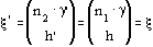 Nastêpny przypadek, który rozpatrzymy to transformacja macierzy promienia x na granicy dwóch ośrodków o różnych współczynnikach załamania n1 i n2. Jak widaæ na rys. 24 wysokośæ h i h są tym razem jednakowe, h = h, natomiast zmianie ulegnie kąt g . Z prawa Snella w przybliżeniu małych kątów mamy n1× g = n2× g a wiêc: