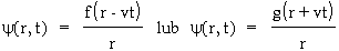 Wybieramy uk³ad wspó³rzêdnych sferycznych r, f i q ; spodziewamy siê, ¿e uk³ad ten bêdzie wygodniejszy w sytuacji, gdy ¼ród³o fali znajduje siê w początku uk³adu. Poniewa¿ ¿aden kierunek nie jest, wobec tego, wyró¿niony, oczekujemy, ¿e funkcja y bêdzie zale¿na tylko od wspó³rzêdnej r, a nie od kątów f i q , tzn y (r,t) = y (r,t) (dlatego, choæ wydaje siê to dośæ osobliwe, okazuje siê, ¿e nie potrzebujemy nawet wiedzieæ, jak konkretnie definiuje siê te inne wspó³rzêdne i jaki jest ich związek ze wspó³rzêdnymi kartezjañskimi). Warto zwróciæ uwagê, ¿e bêdzie to z pewnością inny rodzaj fali, ni¿ fala p³aska, którą rozpatrywaliśmy poprzednio; powierzchnie sta³ej fazy bêdą bowiem powierzchniami sferycznymi a nie p³aszczyznami (spodziewamy siê argumentu postaci r-vt, czyli (x2 +y2 +z2)1/2 -vt, a nie x-vt, czy te¿ a x+b y+g z-vt).