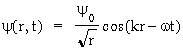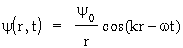gdzie, aby uniezale¿niæ siê od jednostek, w których mierzymy odleg³ośæ wprowadzamy wielkośæ k, zwaną liczbą falową, o wymiarze cm-1, zdefiniowaną jako odwrotnośæ pewnej charakterystycznej d³ugości l , pomno¿onej przez 2p (k = 2p /l ). Argument funkcji cosinus jest wtedy wyra¿ony tak jak nale¿y, w radianach, dodatkowo zaś, ze wzglêdu na sta³ą przy czasie t mamy: