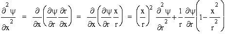 Poniewa¿ wspó³rzêdne kartezjañskie wystêpują w funkcji y poprzez r, r = (x2 +y2 +z2)1/2, pochodne potrzebne do wyliczenia laplasjanu bêdą mia³y nastêpującą postaæ: