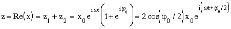 Aby porównaæ u¿ytecznośæ obu zapisów w konkretnych rachunkach obliczymy rezultat z³o¿enia dwóch liniowych i harmonicznych drgañ o tej samej czêstości ko³owej ale ró¿nej fazie początkowej:
