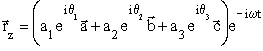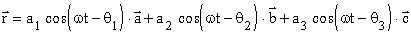 gdzie trzy amplitudy a1, a2 i a3, a tak¿e trzy fazy początkowe q 1, q 2 i q 3 mogą mieæ dowolne wartości (oczywiście rzeczywiste). Jeśli wprowadzimy trzy wektory jednostkowe skierowane wzd³u¿ osi uk³adu to po³o¿enie punktu materialnego mo¿emy opisaæ wektorem:
