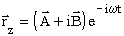 Wektor A + iB nazywamy zespoloną amplitudą drgania. Jak widaæ ka¼demu zbiorowi amplitud i faz początkowych opisujących oscylacjê ka¿dej sk³adowej kartezjañskiej odpowiada para rzeczywistych wektorów A i B. Rzeczywista czêśæ wektora rz mo¿e byæ w takim razie zapisana w innej postaci: