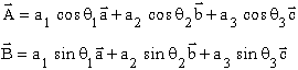Wybierzmy uk³ad wspó³rzêdnych w p³aszczy¼nie wyznaczonej przez wektory A i B i oznaczmy wspó³rzêdne kartezjañskie punktu materialnego w tym uk³adzie literami x i h . Mamy wówczas: