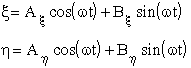 Wyznaczając z pierwszego równania cos(w t) i wstawiając do drugiego równania, nastêpnie wyliczając sin(w t) otrzymamy: