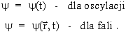 Tak wiêc, o ile oscylacjê pewnej wielkości fizycznej y mo¿na opisaæ przy pomocy funkcji jednej zmiennej, podającej zale¿nośæ tej wielkości od czasu t, to opis fali wymaga funkcji dwóch zmiennych, przestrzennej r i czasowej t. Mamy wiêc:
