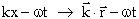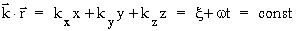 gdzie k jest wektorem falowym, wskazującym kierunek rozchodzenia siê fali (d³ugośæ wektora k wynosi oczywiście k) a r jest wspó³rzêdną przestrzenną. Jasne, ¿e dla k skierowanego wzd³u¿ osi x, mamy kr = kx i wszystko sprowadza siê do rozpatrywanego przez nas przedtem przypadku jednowymiarowego. Narzucając warunek sta³ej fazy otrzymamy równanie wią¿ące ze sobą wektor falowy k i wspó³rzêdną r: