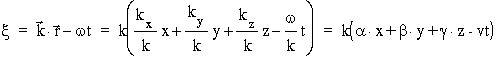 które, dla trójwymiarowej fali p³askiej rozchodzącej siê w kierunku osi x, wobec a = 1, b = 0 i g = 0, poprawnie sprowadzi siê do x - vt, wyra¼enia, którego u¼ywaliśmy ju¿ przedtem dla fali jednowymiarowej.