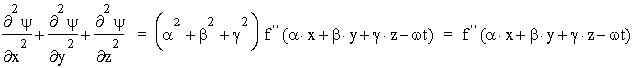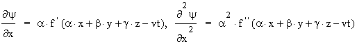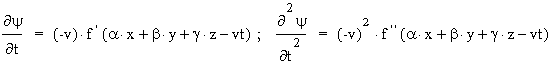 F(x,y,z,t) = C1 f1(a x+b y+g z-vt) + C2 f2(a x+b y+g z-vt).