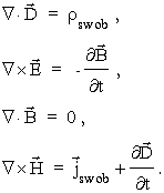 gdzie r i j oznaczają odpowiednio gêstośæ ³adunku i prądy pochodzące od ³adunków swobodnych (upraszczamy oznaczenia; po to w koñcu wprowadzono wektory D i H, ¿eby nie trzeba by³o pamiêtaæ o ró¿nych mo¿liwych rodzajach ³adunków i prądów).