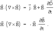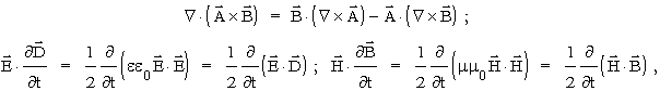 Skorzystamy teraz z dwóch równañ z rotacją, które pomno¿ymy skalarnie odpowiednio przez wektor E i H: