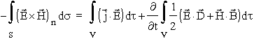 w sposób oczywisty przedstawiające bilans energetyczny uk³adu fizycznego (oczywisty, ze wzglêdu na wystêpowanie wyrazu jE, o którym ju¿ powiedzieliśmy, ¿e przedstawia chwilową moc straconą na rzecz uk³adu ³adunków). Z ca³ą pewnością mo¿na by³oby dok³adniej siê przyjrzeæ poszczególnym wyrazom, ale i bez tego mo¿na ju¿ teraz odgadnąæ, ¿e wyraz po lewej stronie przedstawia moc wp³ywającą do uk³adu (ze wzglêdu na znak minus), która, jak wskazuje strona prawa, mo¿e zostaæ zu¿yta na wykonanie pracy nad uk³adem ³adunków swobodnych lub przyczyniæ siê do wzrostu pewnej wielkości, która musi byæ energią pola elektromagnetycznego zawartego w objêtości V.