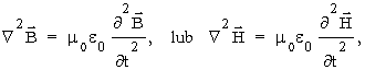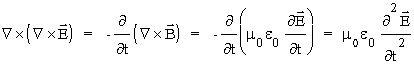 Zupe³nie analogicznie, biorąc rotacjê z obu stron równania czwartego, wykorzystując nastêpnie równanie drugie (rotacjê z pola E zastêpujemy pochodną po czasie z pola B) uzyskujemy równanie: