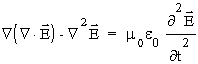 (zwróæcie uwagê na ró¿nicê pomiêdzy gradientem z dywergencji pola, a laplasjanem z tego¿ pola). W ostatnim kroku wykorzystamy pierwsze równanie Maxwella (divE = 0) by otrzymaæ równanie: