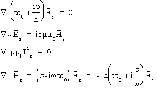 a wiêc razem ju¿ wszystko co potrzeba aby, po wykonaniu ró¿niczkowania po czasie i podzieleniu przez czynnik e-iw t, z równañ Maxwella otrzymaæ równania na Es i Hs: