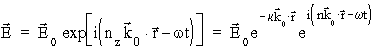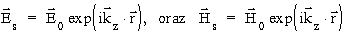 gdzie kz oznacza zespolony wektor falowy. Czêśæ rzeczywista tego wektora odpowiada wektorowi falowemu k, a nad znaczeniem czêści zespolonej (o ile siê takowa pojawi), zastanowimy siê pó¼niej. Sta³e wektory E0 i H0 przedstawiają zespolone amplitudy oscylacji wektorów pola E i H (wystêpowanie czêści urojonej w amplitudzie oscylacji, jak pamiêtamy, oznacza polaryzacjê eliptyczną).