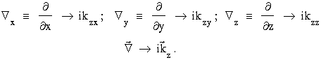 Poniewa¿ kz× r = kzxx + kzyy + kzzz, dzia³anie operatora Ñ na przestrzenną czêśæ fali p³askiej bêdzie równowa¿ne mno¿eniu przez odpowiednie sk³adowe wektora kz: