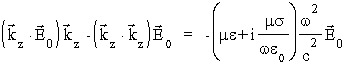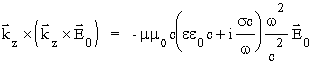 £atwo zauwa¿yæ, ¿e równania te to nie są ju¿ równania ró¿niczkowe, tylko algebraiczne, a wiêc znacznie ³atwiejsze do rozwiązania. Spróbujemy najpierw otrzymaæ równanie na E. Do drugiego równania z iloczynem wektorowym podstawiamy H0 wyliczone z poprzedniego i otrzymujemy w ten sposób równanie na E0: