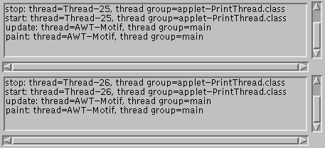 Below are two PrintThread applets. (Here's thecode.) PrintThread calls