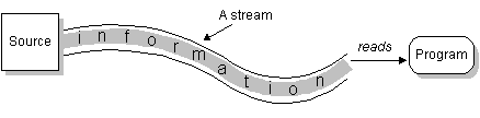 To bring in information, a program opens a stream on an information source (a file, memory, a socket) and reads the information sequentially, as shown here: