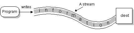 Similarly, a program can send information to an external destination by opening a stream to a destination and writing the information out sequentially, like this: