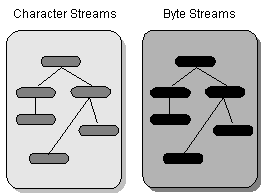 The java.io(in the API reference documentation) package contains a collection of stream classes that support these algorithms for reading and writing. To use these classes, a program needs to import the java.io(in the API reference documentation) package. The stream classes are divided into two class hierarchies, based on the data type (either characters or bytes) on which they operate.