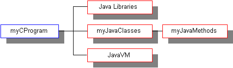 For example, the following figure shows how a legacy C program can use the JNI to link with Java libraries, call Java methods, use Java classes, and so on.
